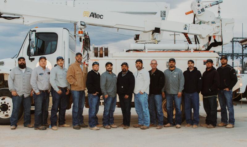 The line crew consists of (left to right) Juan Carreon, Kendall Lunt, Keegan McKinney, Shane Howard, Chris Hancock, Fernando Macario, Dustin Larkey, Ryan Botkins, Trent Bingham, Victor Trujillo, Jacob Trujillo, Mike Nagy, Chris Owens. Not pictured Myles Ray.
